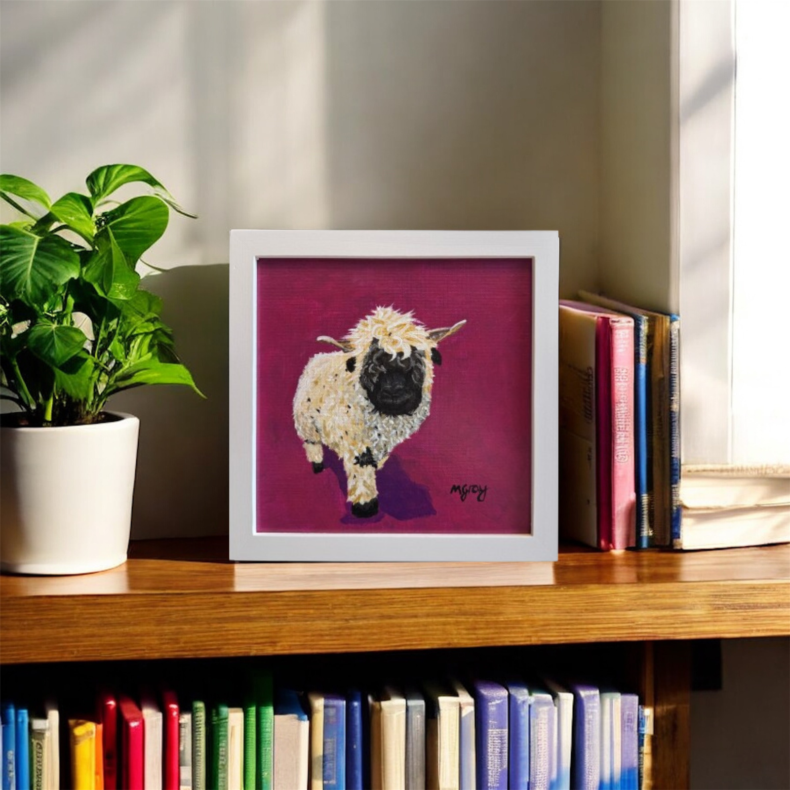 There’s something quietly joyful about a Valais Blacknose sheep — the soft tumble of wool, the dark curious eyes, the confident little stride. In this painting, I wanted to capture that exact moment: the gentle saunter forward, as if this fluffy character has just spotted you and decided to say hello.