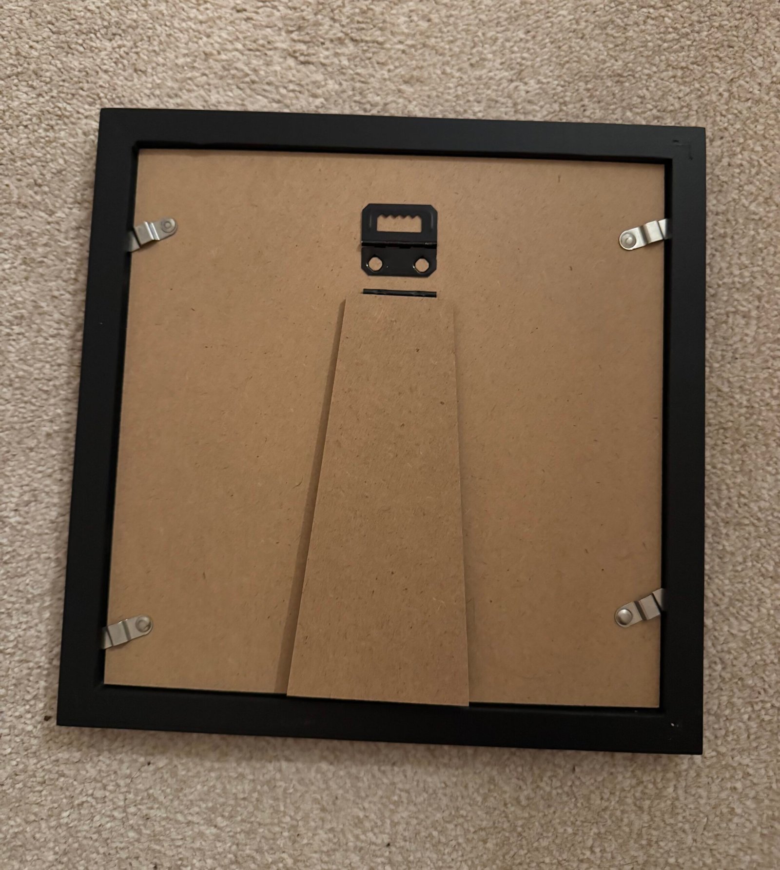 The fur features metallic silver highlights that catch the light and add a subtle shimmer, while the whole piece has been varnished to protect it and make those colours pop. It comes framed in a sleek black wooden frame with an easel stand, ready to sit proudly on a shelf or hang on the wall.